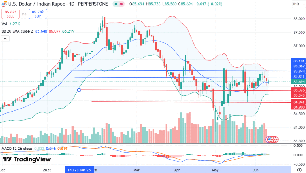 On the Geopolitical side, nearly three weeks after the end of the India-Pakistan war, but yesterday the New Delhi warned that the root causes of the conflict remain unchanged and India is ready to strike anywhere in Pakistan if any terrorist attacks happen. It spreads some sense of uncertainty in the markets. All of these factors fundamentally impact the pricing of the USD/INR.