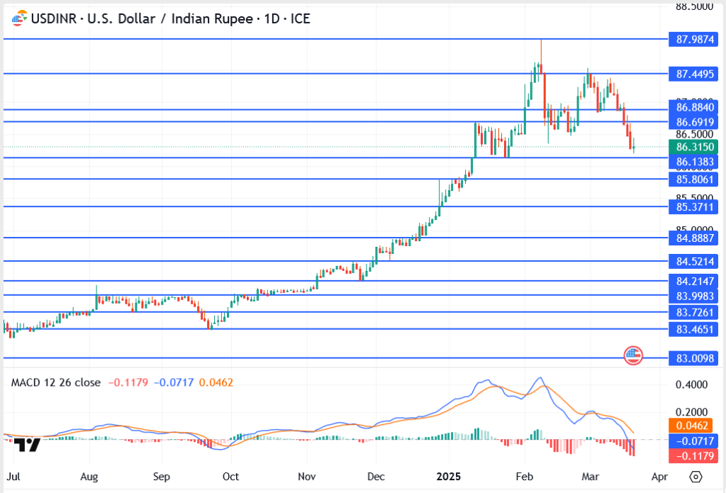 The USD/INR rally isn’t over just yet, but the next move depends on whether the bulls or bears take control. If the pair breaks above 86.69, we could see a swift march back toward the three-week high of 87.44 and beyond.