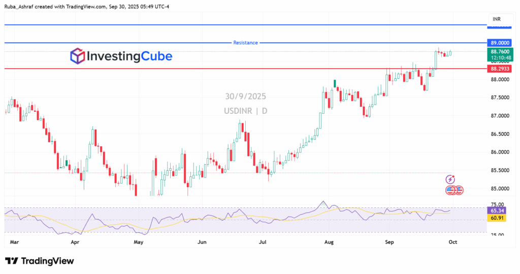 As long as the U.S. dollar continues to weaken due to a dovish Federal Reserve and high expectations of two more rate cuts by the end of 2025, USD/INR is most likely to rise.
