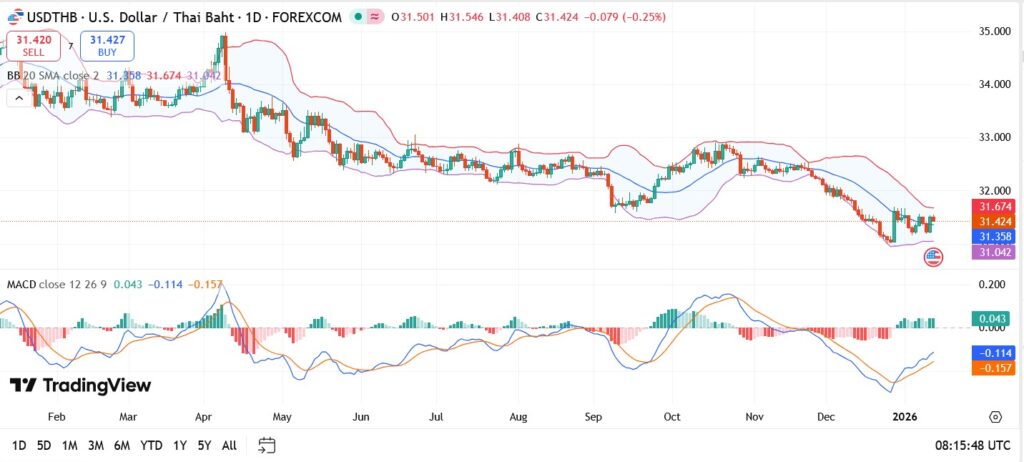 USD/THB was under pressure during Asian trading hours, trading near the 31.40–31.50 zone as the Thai baht continues to outperform the US Dollar. The pair has struggled to regain upside traction, with recent rebounds proving shallow amid a broader downtrend that has been in place since late 2025.