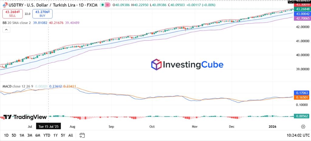 The 43.00 level remains a key psychological pivot. As long as USD/TRY holds above this area, upside risks stay dominant.