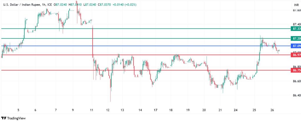 Conversely, the momentum will shift to the upside if the price goes above 87.09. If that happens, USDINR could head higher to encounter the first resistance at 87.20. The downside narrative will be invalid if the price breaks above that level, with the momentum potentially spilling over to test the second resistance at 87.33.