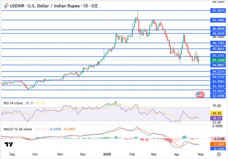 The rupee is holding firm near 85.16 against the U.S. dollar, showing early signs of stability after a volatile April. Softer crude prices and improved trade sentiment are offering some breathing room, helping the pair stay supported following last week’s rebound from the lows.