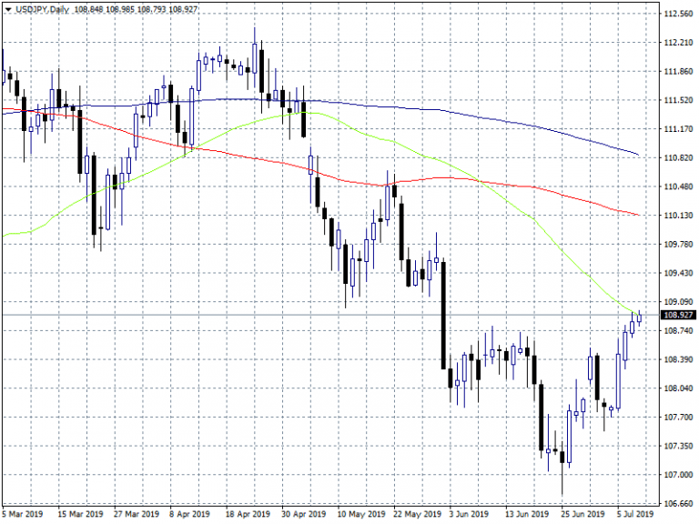 USDJPY continues its trip above 108 adding 0.17 percent today at 108.95 ahead of Jerome Powell testimony later today looking for fresh cues on next monetary policy move. Earlier today the Japan Domestic Corporate Goods Price Index, Month over Month, came in at -0.5% below expectations of -0.3% in June.