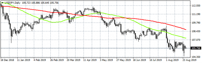 USDJPY trades 0.04% higher at 105.76 as the inversion of the US yield curve to the lowest level in 12 years pointing to US recession. On the USA data front, the US house price growth slowed in June, according to the S&P/Case-Shiller National Home Price Index. The pair hit the daily low at 105.64 and the daily high at 105.88. The central bank of China set the Yuan rate (USDCNY) at 7.0835 versus yesterday fix at 7.0810.