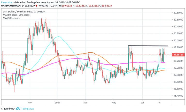 - USDMXN consolidates today around recent highs at 19,5788 amid USD strength across the board. Yesterday the Bank of Mexico cut interest rates for the first