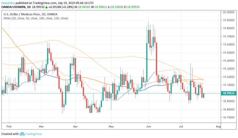 USDMXN was under selling pressure yesterday as investors dumped USD after dovish comments from New York Fed President John Williams and despite problems the Mexican economy is facing due to downgrades of Pemex to speculative grade, or junk status. On the technical side even today the pair is adding 0.23 percent to 18.9857 the bears are in control. Immediate support for the pair stands at 18.93 the low from July 18th while more solid buying will emerge at 18.86 the low from July 8th.