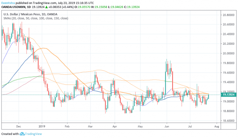 On the upside first resistance stands at 19.1582 the 50 day Moving Average while extra offers will emerge at the 19.28 the high from July 10th. Possible long positions in USDMXN can be initiated targeting 19.16 with a stop loss order at 19.0659. Bears have to wait for a break below the 20 day moving average that can be a strat for another leg lower below 19.00Don’t miss a beat! Follow us on Twitter.
