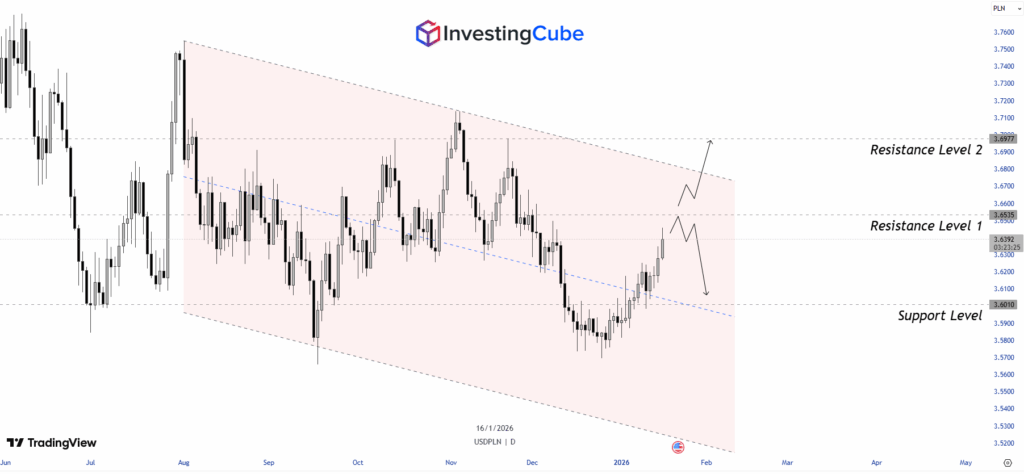 USDPLN is consolidating, moving in a tight range as both U.S. monetary policy expectations and the local Polish outlook are being re-rated by markets. Trading has been in a range between around 3.60 – 3.63 in recent weeks, not far above last year’s peaks but still well clear of multi-month lows. This sideways movement is essentially a result of an equilibrium between a structurally weaker U.S. dollar and a reducing policy cushion for the Polish zloty.