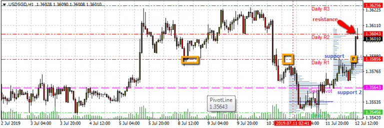 The Singapore Dollar is taking the heat as the USD/SGD pair has made a 30-pip upside move and is presently testing the R2 resistance at 1.36043.
