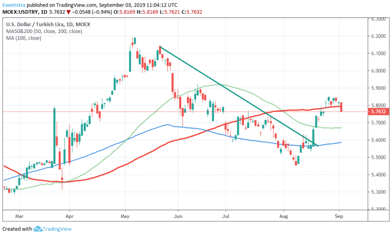 - On the technical side, bulls today loosing the control of the pair as the price breached below the 100 day moving average at 5.7947. USDTRY will find