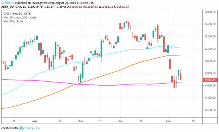 DAX index trading 1.10% lower at 11,723 as investor’s turn cautious after the US administration is delaying a decision on whether to allow U.S. companies to do business with Huawei, while the weakness of Yuan continues as PB of China set the yuan (USDCNH) fixing above the 7.00 level for the second day in a row. Poltical turmoil in Italy also weighs on traders sentiment as Prime Minister Salvini aiming to snap election on October 13. DAX index trades close to two month lows, dragged by Thyssenkrupp AG -3.19%, Continental AG -2.5%. and Deutsche Post AG -2.9%. On the other hand, Bayer AG is 3.10% higher while Merck KGaA is 0.49% higher.