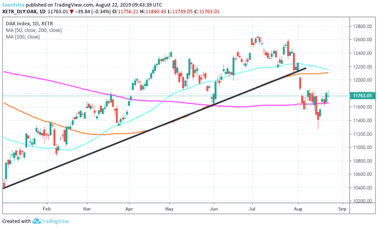 DAX index trading 0.18% lower today at 11,781 as investor’s turn cautious after the Fed minutes released yesterday and despite some positive macro data from EU today. Germany’s Manufacturing PMI came in at 43.6 beating expectations of 43 in August while the Composite PMI also came in at 51.4 above forecasts of 50.5 in August. The EU Manufacturing PMI came in at 47 topping forecasts of 46.2 in August.