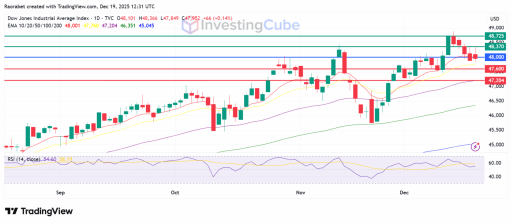 Keep a close watch on the 47,600 support level. If the Dow stays above that and then jumps past the 48,370 resistance level, it could mean the market is headed up again.