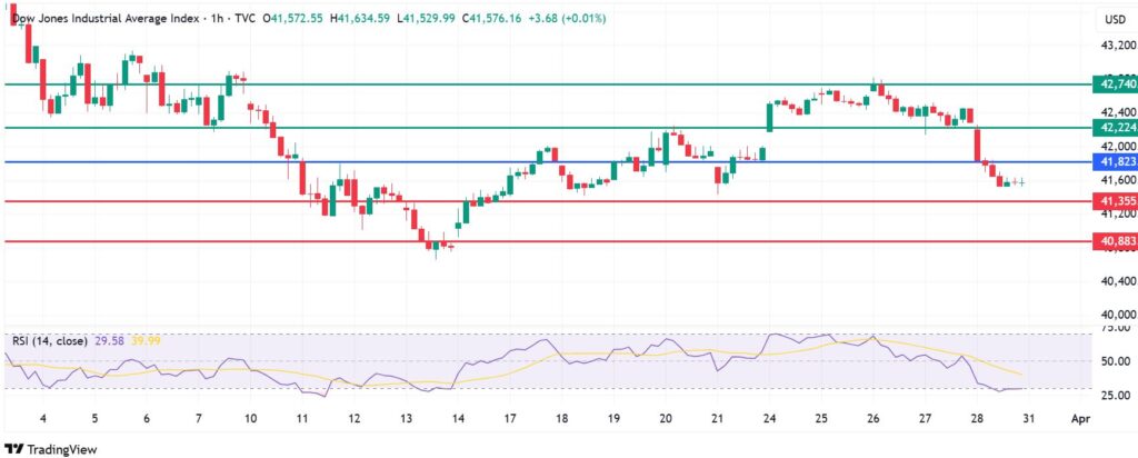 On the other hand, moving above 41,823 points will shift the momentum to the upside. With the bulls in control, the Index will likely encounter initial resistance at 42,224 However, a stronger momentum will clear that barrier and could push it up to encounter the second resistance at 42,740.