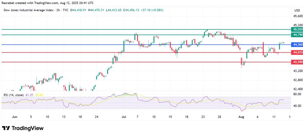 Alternatively, the momentum could shift to the downside if the Index breaks below 44,360. In that case, the Dow Jones Index could find primary support at 44,015 points. Breaking below that level will invalidate the upside narrative, with the Index potentially going on to test 43,590.