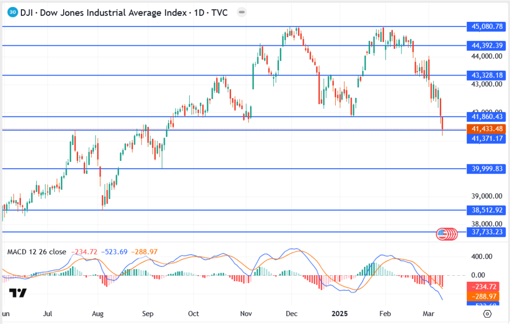 With inflation data looming and trade tensions heating up, the Dow Jones remains vulnerable to more volatility. If inflation remains stubbornly high, the Fed could delay rate cuts, adding further pressure. Meanwhile, Trump’s aggressive tariff strategy could spark global economic instability, pushing the Dow lower.