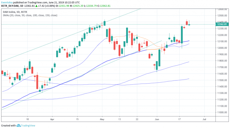 European equities trading cautiously higher in early trade on Friday following a strong performance on Wall Street as S&P 500 hit a record closing all time high at 2,954 and a mixed session in Asian markets with investors sentiment fragile by escalating tensions between the Iran and US. A report overnight that President Trump approved military action against Iran but then pulled back from launching the attacks weighted on traders mood. Earlier today the German PMI figure came in beating economist expectations. The Eurozone Composite PMI rose to 52.1 from 51.8 while the Manufacturing PMI was little changed at 47.8 above market consensus. In France the Markit PMI Composite registered at 52.9, beating analyst forecasts of 51.2 for June. Falling interest rates around the globe makes equities attractive in Europe and USA.