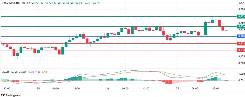 On the other hand, going above 8,700 points will signal a shift in the momentum to the downside. In that case, initial support is likely to come at 8,673. The upside narrative will be invalid if the price breaks below that level. Also, the resulting momentum could extend the downside and drive the index lower to test the second support at 8,648 points.