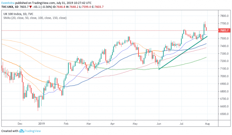 - FTSE 100 underperforms its European peers today giving up 0.54 percent at 7,604 as US-China negotiations finished early, although there was reportedly a