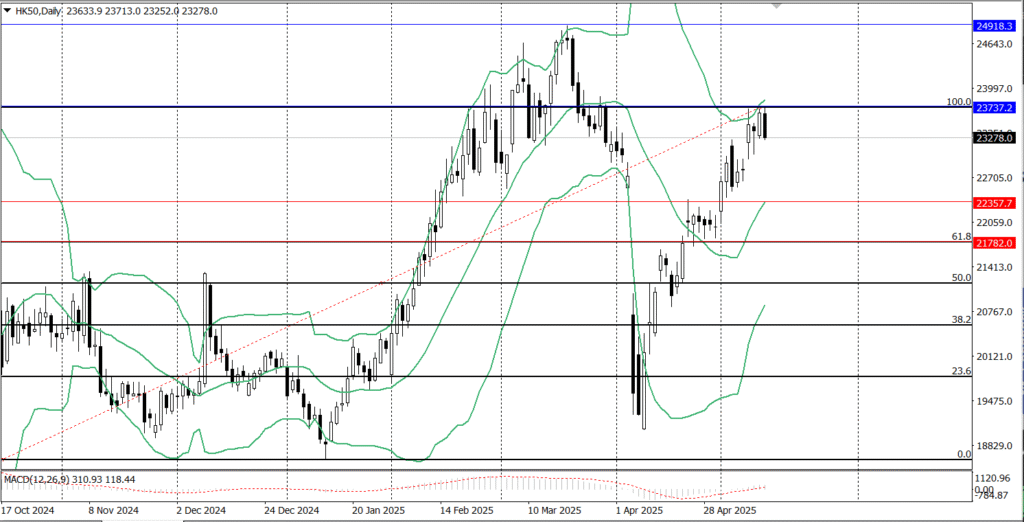 - Technically, the index faces strong resistance at 23,737.2, with potential for either breakout or bearish reversal.