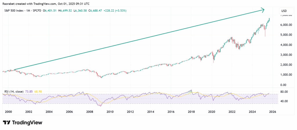 A monthly chart showing the S&P 500 Index on a strong uptrend since 2000. Source: TradingView