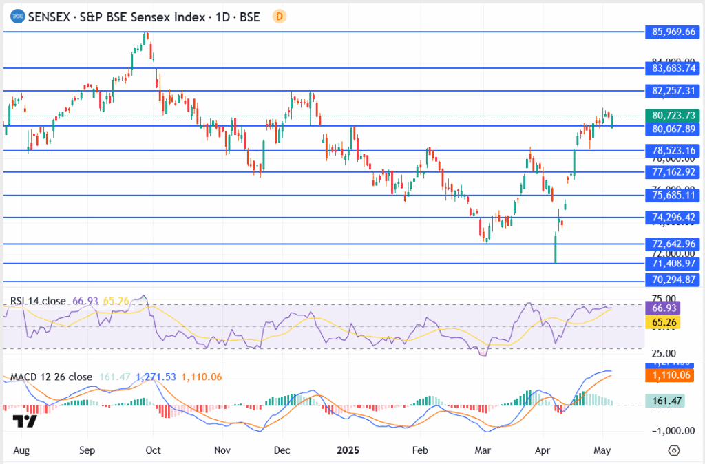 - Immediate resistance at 80,723, next key hurdle at 82,257