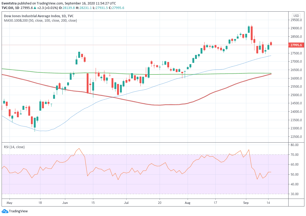 Further boosting sentiment is the performance of the biotech stocks on the Nasdaq 100. Regeneron saw its stock price soar by 7.21% on Monday after the administration of the company’s investigative cocktail for the treatment of the coronavirus, REGN-COV2. The drug remains in clinical trials and is not yet approved by the FDA for widespread use. Several biotech stocks such as MyoKardia Inc, Artelo BioSciences, Eidos Therapeutics, Corvus Pharmaceuticals and Humanigen Inc, are all seeing double-digit gains on the day.