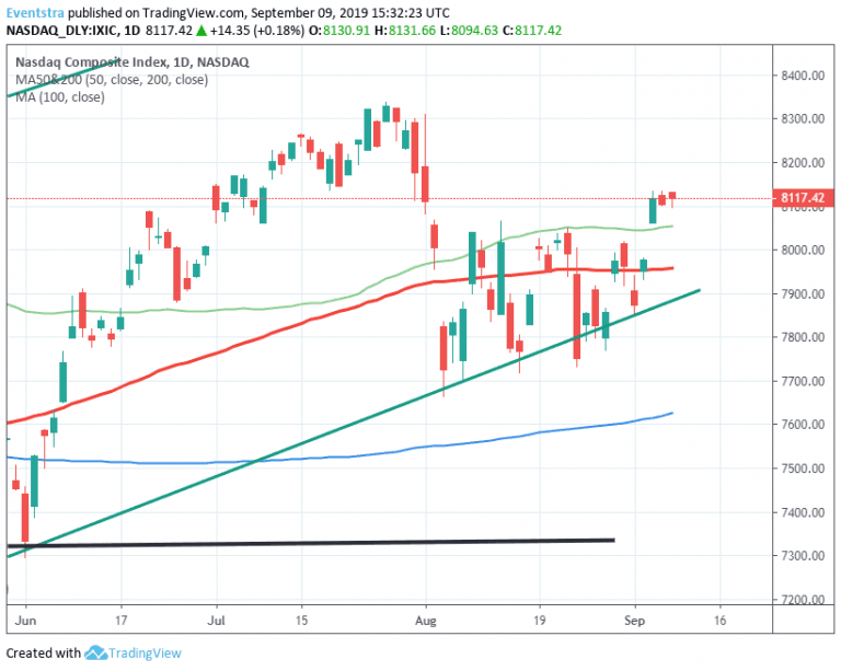 Nasdaq started higher today adding 0.16% at 8,115 as investors focus turn to central banks measures to support economic growth. Markets expect the ECB to cut interest rates by 20 bps on Thursday. The Nasdaq is 22.29% higher Year to date.