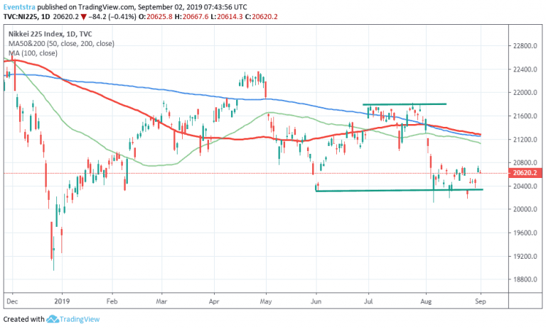 - Nikkei 225 finished 0.41% lower at 20,620 after Japan Nikkei Manufacturing PMI declined to 49.3 in August from previous 49.5. Nikkei 225 getting a boost