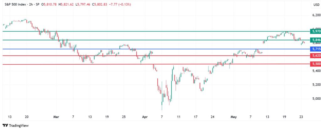 Conversely, the momentum will shift to the downside if the action goes below 5,715. That will likely see the first support come at 5,620. The upside narrative will be invalid below that level. Furthermore, such momentum could extend losses and test the second support at 5,500 points.