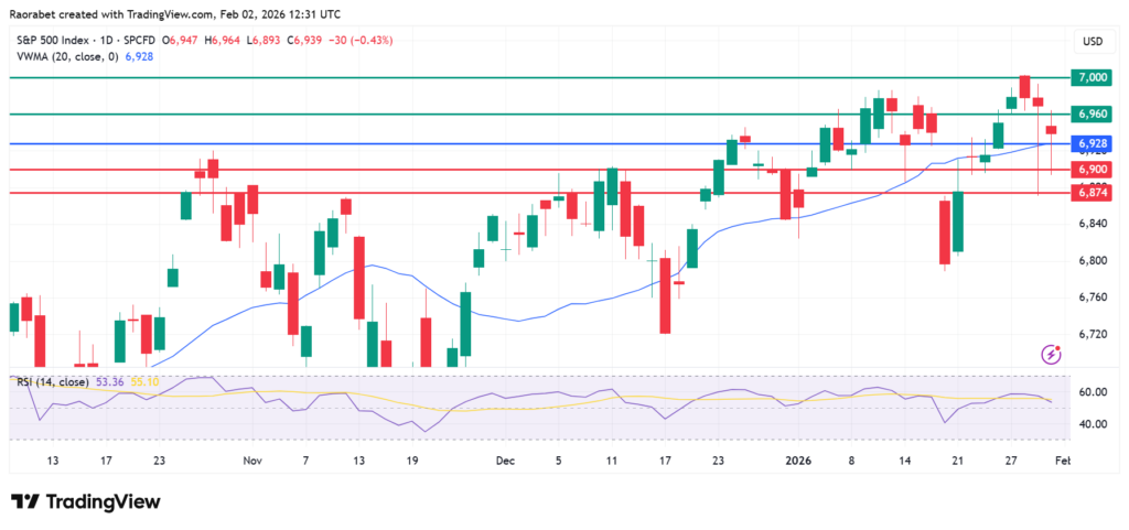 The S&P 500 enters the week of February 2, 2026, under increased observation because of AI bubble worries. January was shaky. The index closed near record highs but showed signs of slowing down. On January 30, it was trading around 6,950. The S&P has risen slightly this year but faces tests from upcoming economic data and corporate earnings.