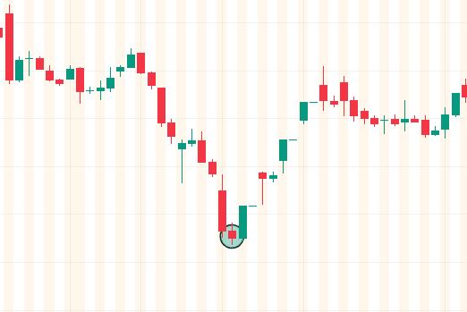 This pattern looks like a cross or a plus sign. In a Doji pattern, the opening and closing price are almost the same. It appearance signals a near-balance between buying and selling momentum, with most traders likely at a crossroads. It often signals an imminent reversal if it appears after a strong trend.