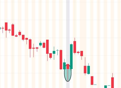 The next step is to look at the arrangement of the candlesticks in the chart- both historical and recent. For instance, if they are registering higher highs and higher lows, with most of them being green, it denotes an uptrend, i.e. a bullish market.