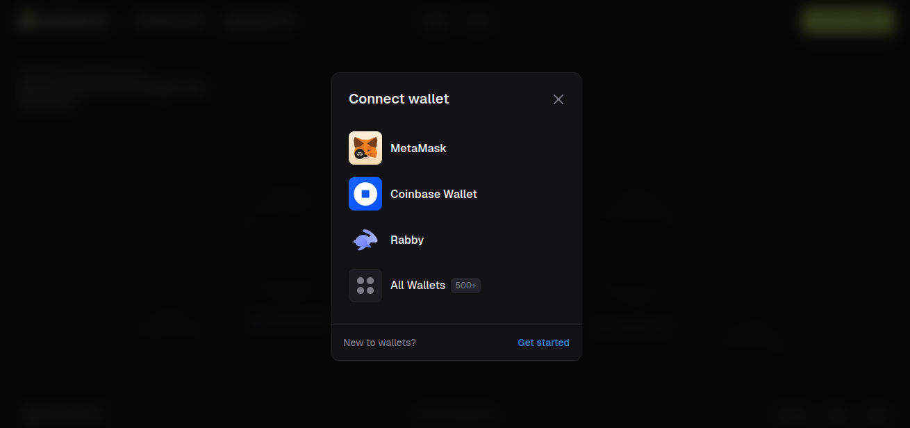 To get started you’ll need to head over to www.arma.xyz. Once there, the first thing to do is to click on the top right hand corner and connect your wallet to the ARMA app. Fortunately, it’s compatible with pretty much every wallet going, including MetaMask, Coinbase Wallet, Rainbow, Rabby, Trust Wallet, Exodus and more than 500 others.