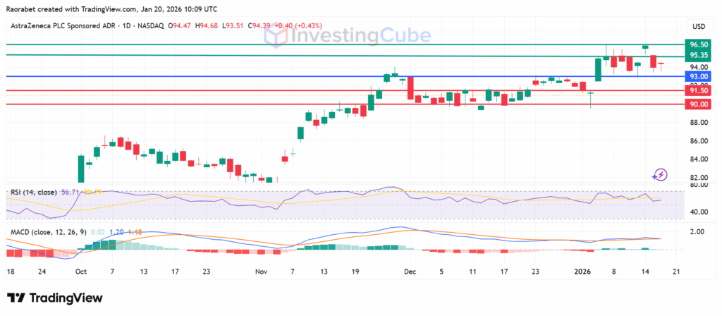 AstraZeneca stock daily chart with key support and resistance levels on January 20,2026. Created on TradingView