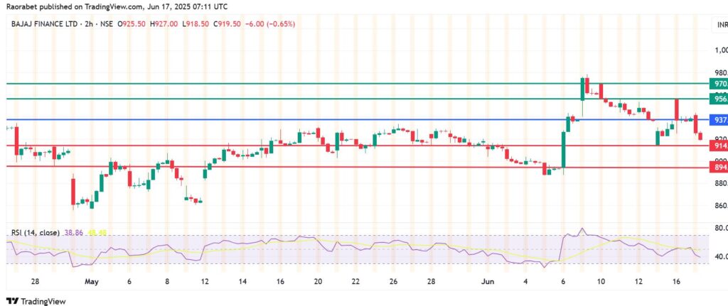 Bajaj Finance stock price pivot mark is at ₹937 and action below that level favours the sellers to be in control. The first support will likely be at ₹914, but a stronger momentum will break below that level and potentially test the second support at ₹894.
