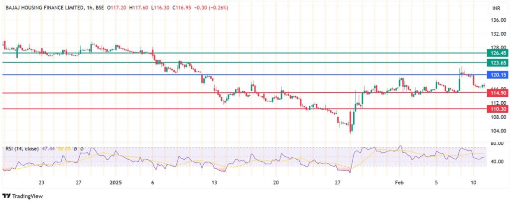 Bajaj Housing share price declined on Monday, going down by 2.5% to trade at Rs 116.65 at the time of writing. The stock has been sending mixed signals in recent days and has gained about 0.9% in the last five sessions. Notably, it has had a rough start to the year, extending a bearish run tracing back to December 2024.