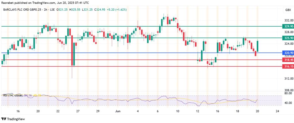 On the other hand, the momentum could shift to the downside if BARC price breaks below 320.90p. In that case, initial support is likely to be at 318.45p. The upside narrative will be invalid if the price breaks below that level. A stronger downward momentum will potentially test 316.15p.