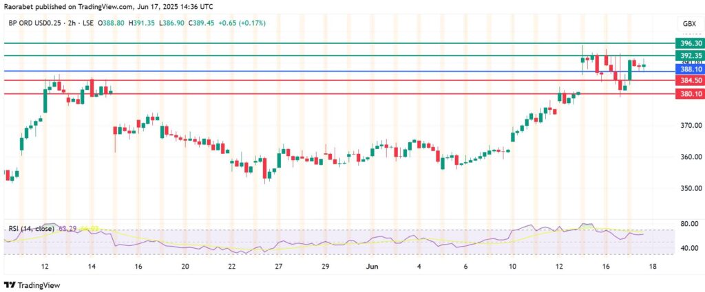 Oil prices have returned to the upside after Monday’s slight decline, with the Israel-Iran war escalating. BP share price responded to these developments by climbing up by 1.7% to trade at 389p in late European trading session on Tuesday. Initial news of a potential ceasefire between the two nations has been neutralised by increased attacks by both sides, with the G7 summit failing to come up with a clear-cut plan for a de-escalation.