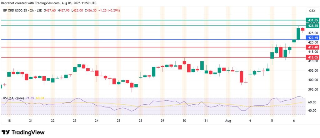 BP(LON: BP.) reported that it had struck a multibillion barrels find off in Bumerangue field off the Brazilian coast, bringing a strong bullish sentiment to its growth outlook. That news was sweetened by the company’s quarterly earnings released on Tuesday. BP reported Q2 2025 net profit of $2.35 billion, beating analysts’ forecast figure of $1.8 billion. In addition, the company announced a $750 million share buyback program and 8.22 cents dividend, reaffirming its positive growth prospects.