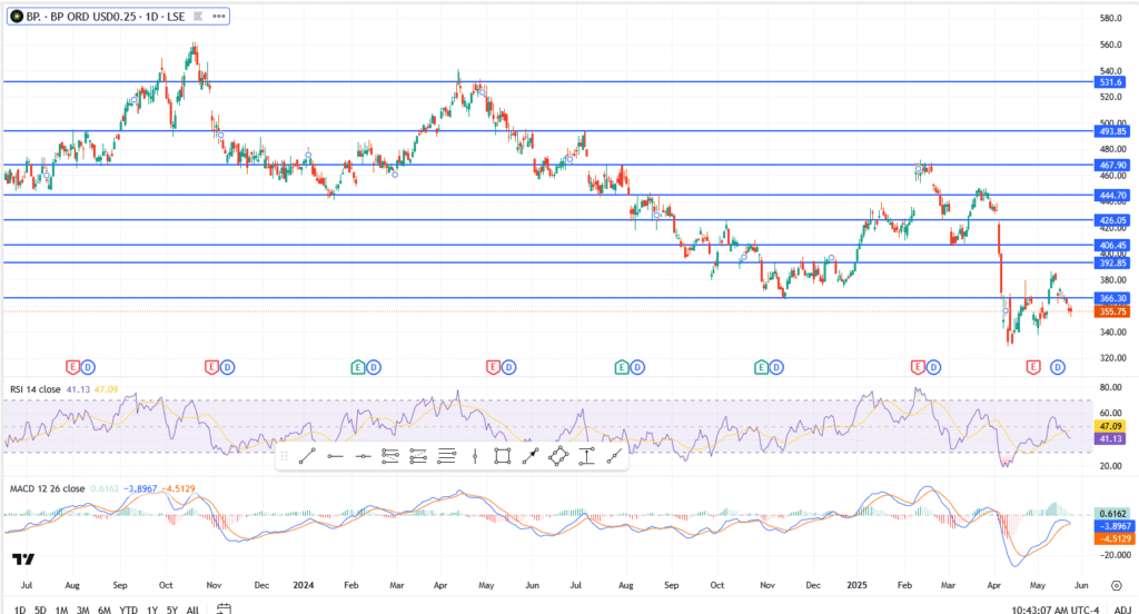 The momentum looks tired. Unless BP reclaims 366p and holds above it, price action could drift lower into the 340–330p zone in the coming sessions.