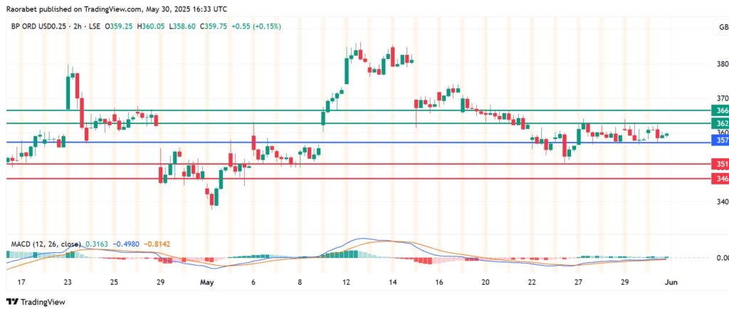 The momentum on BP stock price calls for further upside above the pivot price at 357p and the momentum favours the buyers to stay in control above that level. Immediate resistance will likely come at 362p. However, an extended control by the buyers will clear that barrier and potentially test 366p.