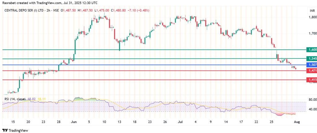 CDSL share price pivots at ₹1,507 and action below that level signals control by the sellers. That momentum will likely find the first support at ₹1,471. However, an extended control by the sellers will break below that level and clear the path to potentially test ₹1,415.