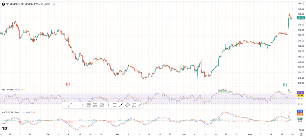 If bulls manage to hold the ₹350–₹355 zone, the next target could be ₹385. Above that? The ₹400–₹410 band comes into play , a level not seen since its post-IPO slump. For now, Delhivery is clearly back in motion.