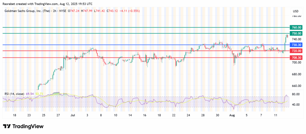The momentum on Goldman Sachs stock price calls for further upside above $730.30. It will likely meet initial resistance at $750. However, further control by the buyers will l clear that barrier and potentially test the second resistance at $ 760in extension.
