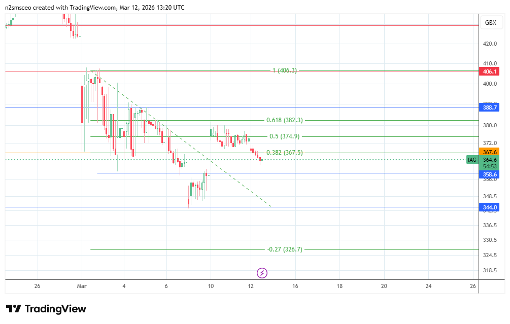 The stock closed on 11 March at 372.6p, posting a range of 370.1p – 376.2p. As of writing on 12 March, the stock’s selling has continued unabated, and it now trades at 363.6p.