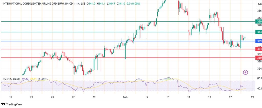 The momentum on IAG share price favours the continuation of the upside above the pivot mark at GBX 339. The stock will likely meet the first resistance at GBX 344. However, a stronger momentum will break above that level and potentially test the second hurdle at GBX 350.
