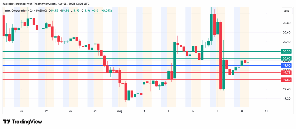 The pivot mark on Intel stock price is at $19.90 and the momentum points to a likely extension of the upside. INTC price will likely meet the first resistance at the $20.05 mark. However, the buyers could break that barrier if they extend their control. That could clear the path to test $20.20.