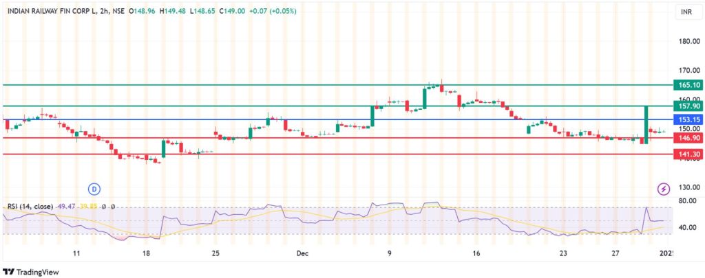 IRFC share price closed the year on a low, dropping by 2.8% to end the session at Rs 149.09. The government-owned corporation lost more than half of the gains generated on Monday when it spiked by 4.8%. Also, it was an outlier on a day when railway stocks including RVNL and IRCON rose by more than 2 percent each.